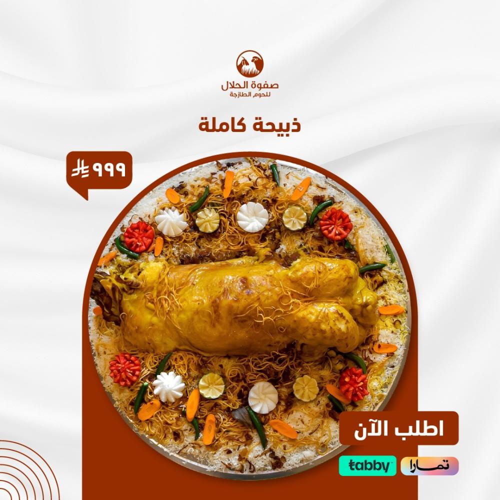 ذبيحة كاملة على صحن أو صحنين – وليمة فاخرة بضيافة صفوة الحلال